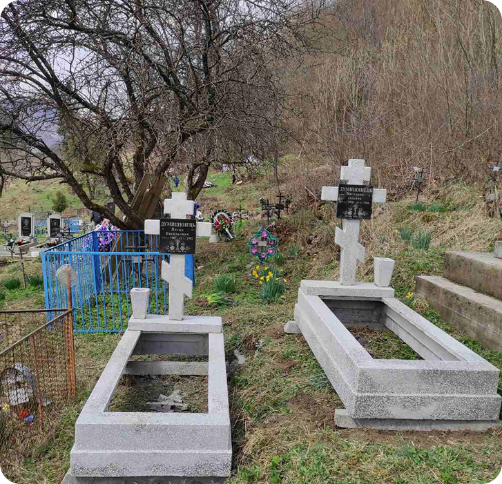 Ми виготовляємо різні моделі пам’ятників: бетонні з крихти, напівгранітні та повністю гранітні у класичному та європейському стилі. Робимо різні види художніх робіт, а також у нас Ви можете придбати різні аксесуари до пам’ятників (гранітні хрести, вази, лампадки, лавочки, латунні хрестики або статуї).